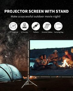 One for All: You may use this 120-inch projector screen for presentations, movies, picnics, birthday parties, and pool parties.