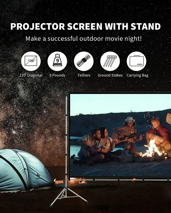 Lightweight and transportable: Weighing only 9 lbs, this projector screen and stand can be quickly folded into the little bag that is provided, making it ideal for outdoor activities like camping.